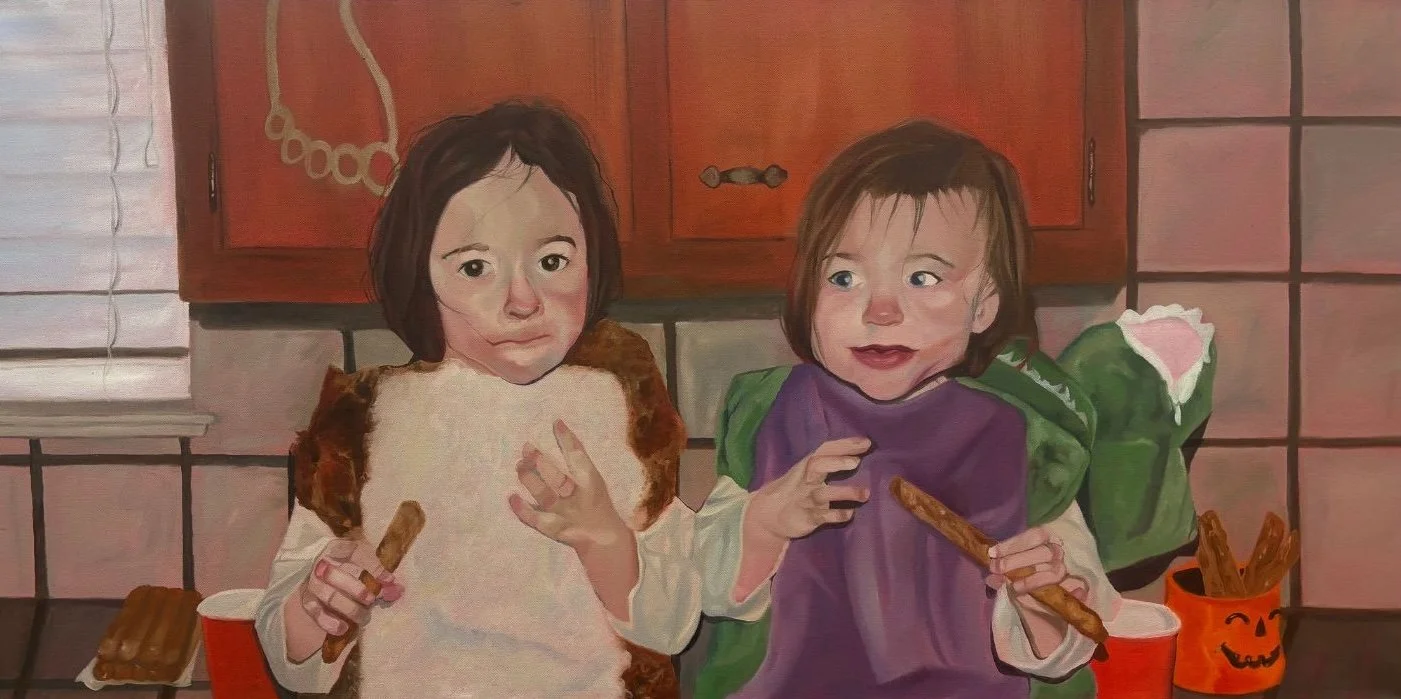 My latest exhibition, Booze and Peppermint, tells some of my personal stories as well as those impacted by alcoholism to emphasize the importance of mental and physical health. Using oil paint and exploring multi-media forms has become a form of spiritual healing for myself, as understanding the experiences of those with alcoholism or those impacted by loved one’s alcoholism is sought throughout my work. I aim to destigmatize the idea of alcoholism as a whole and revisit the experience as human, while also touching upon the healing it takes to live around alcoholism and its effects.
